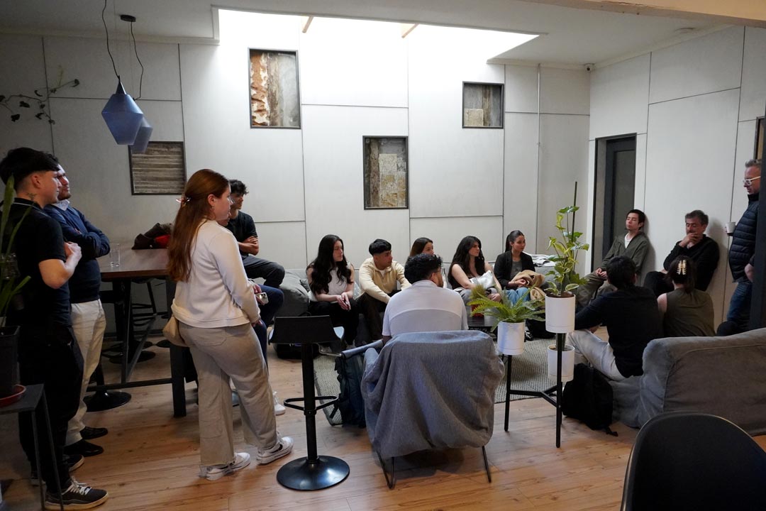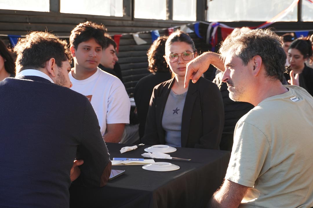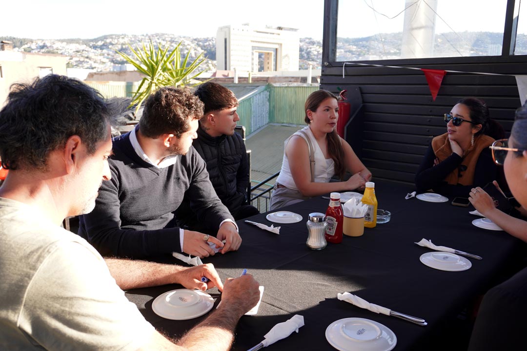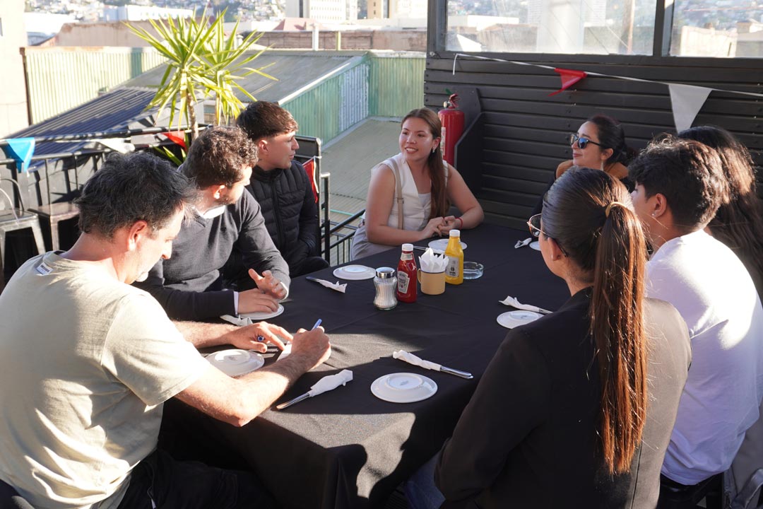 El miércoles 10 de septiembre en la tarde se realizó la cena del Programa de Inmersión Empresarial, una instancia que reunió a 23 jóvenes de entre 18 y 25 años con líderes del ecosistema de emprendimiento de la región de Valparaíso. Esta experiencia permitió abrir un espacio cercano de conversación, donde las y los participantes compartieron inquietudes, motivaciones y aprendizajes vinculados al mundo del emprendimiento.